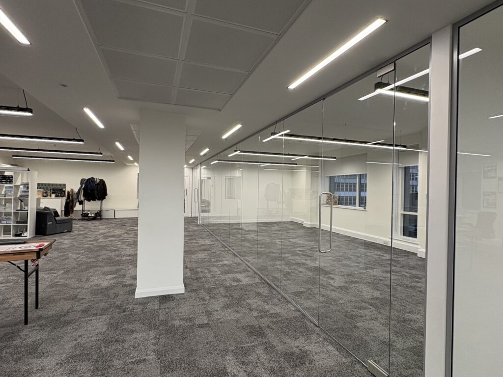 - Acoustic & Privacy Solutions: Beyond glass, we provide high-performance metal stud partitions with specialist acoustic insulation. As a result, sensitive conversations in boardrooms can remain private.